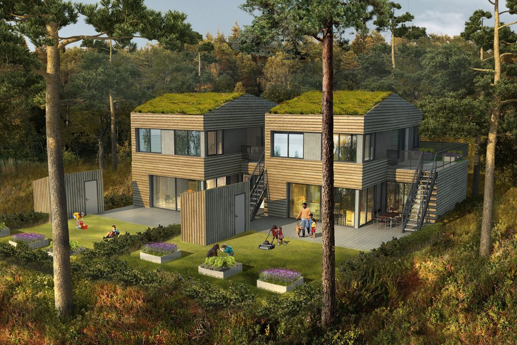 Architect Thomas Sandell’s core idea in designing Skogskvarteren at Ullna Strand (Täby) was to start from the site’s natural conditions. The clean Scandinavian architecture follows the natural elevation changes, and forest has been preserved in a wide corridor between the rows of houses. The result is twofold: an appealing residential area and untouched nature, side by side.