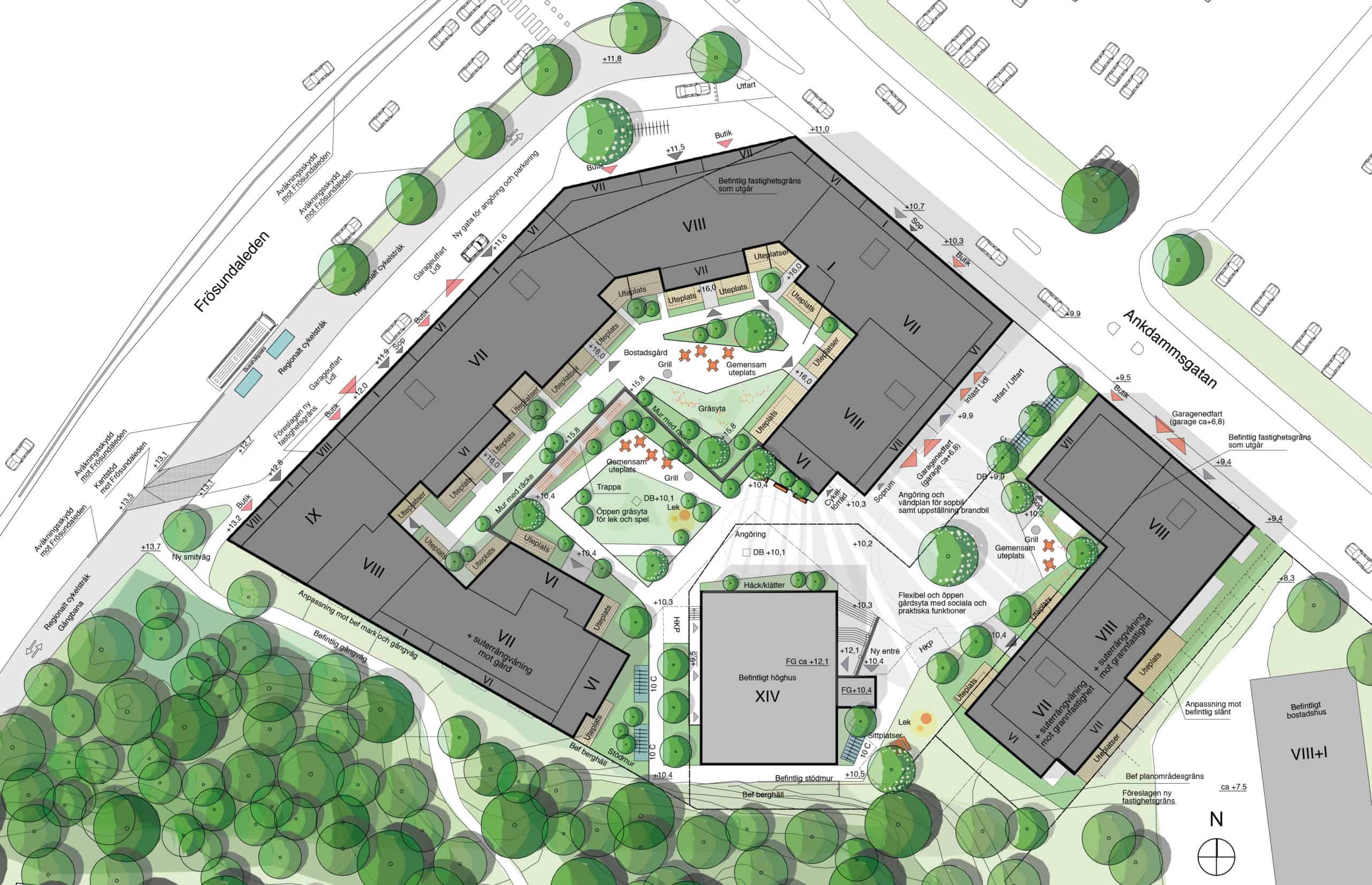 The development of a zoning plan for the construction of approximately 350 residential units on the property began in 2013 and has passed the public consultation stage. The property currently includes a five-storey office building with a garage, loading dock, an external warehouse, a former retail space, a petrol station, and parking areas.