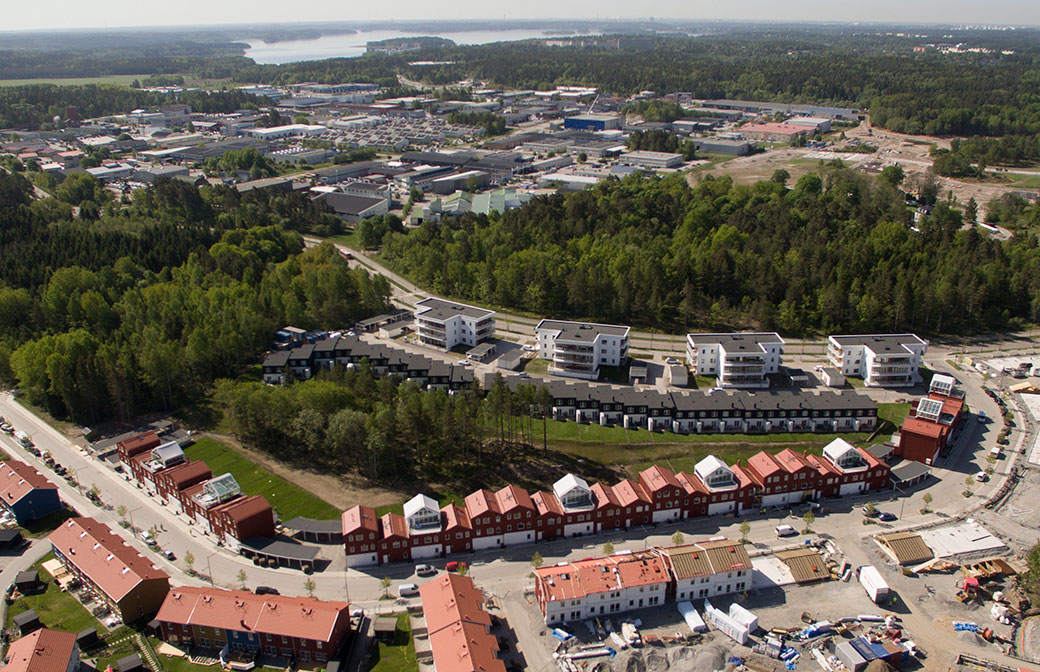 In the autumn of 2012, Titania won Täby Municipality’s tender competition for new development at Ullna Strand, a brand-new, forest-adjacent residential area in Arninge, next to Arninge Retail Park. Titania purchased approximately 26,000 square meters of land from the municipality and built 109 homes. Interest in the area was immense, not least due to its striking architecture and climate-smart solutions, such as the integration of greenhouses on the rooftops of the townhouses.