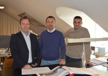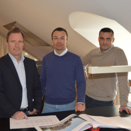 – Det är roligt att kunna erbjuda invånarna i Täby en så spännande produkt som kommer stå färdig redan i slutet av nästa år, säger Wojciech Wondell, projektchef på Titania, som tillsammans med Nikan Ghahremani, vice VD på Titania och Johan Algernon, kommunalråd (M) i Täby Kommun, tog det första spadtaget.
